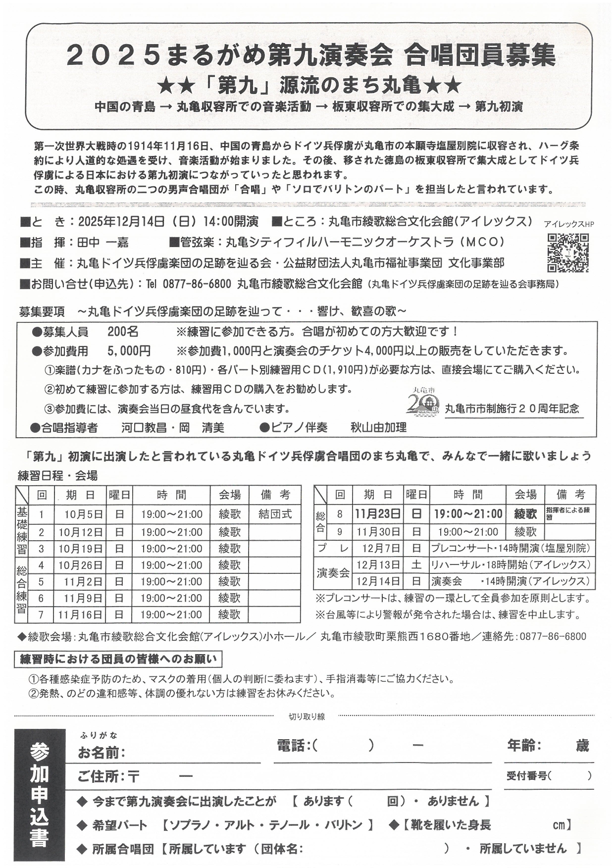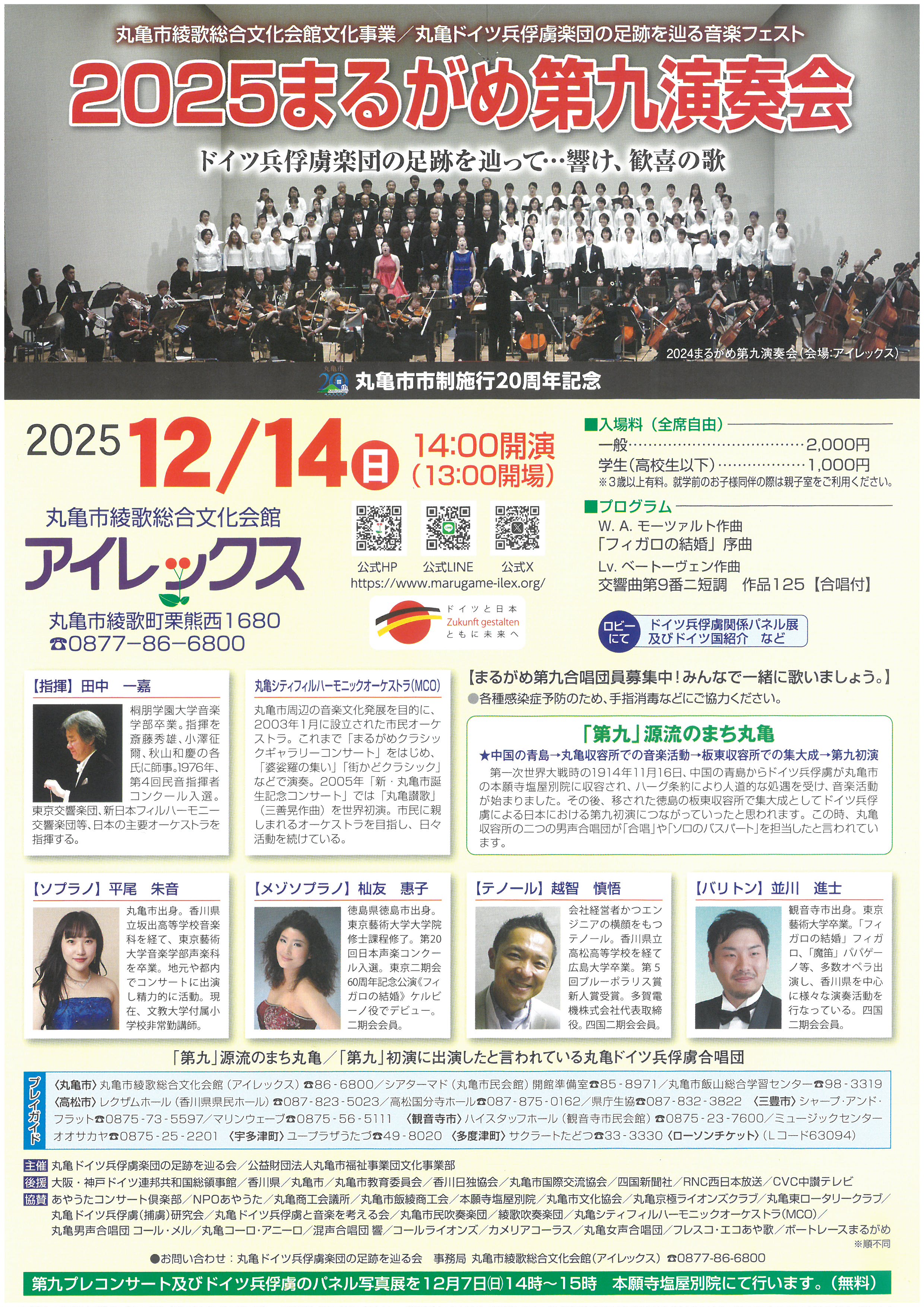| 問い合わせ | 丸亀ドイツ兵俘虜楽団の足跡を辿る会事務局 丸亀市綾歌総合文化会館(アイレックス) Tel:0877-86-6800 |