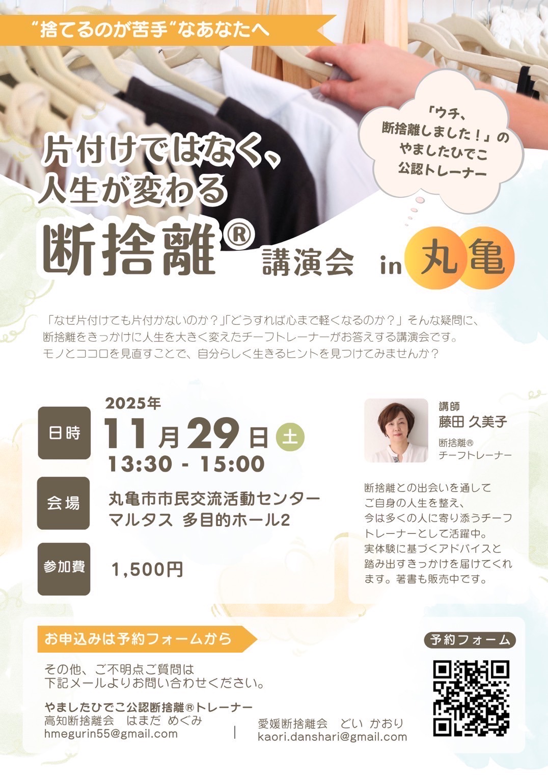 内 容 片付けではなく、人生が変わる断捨離®講演会 in 丸亀