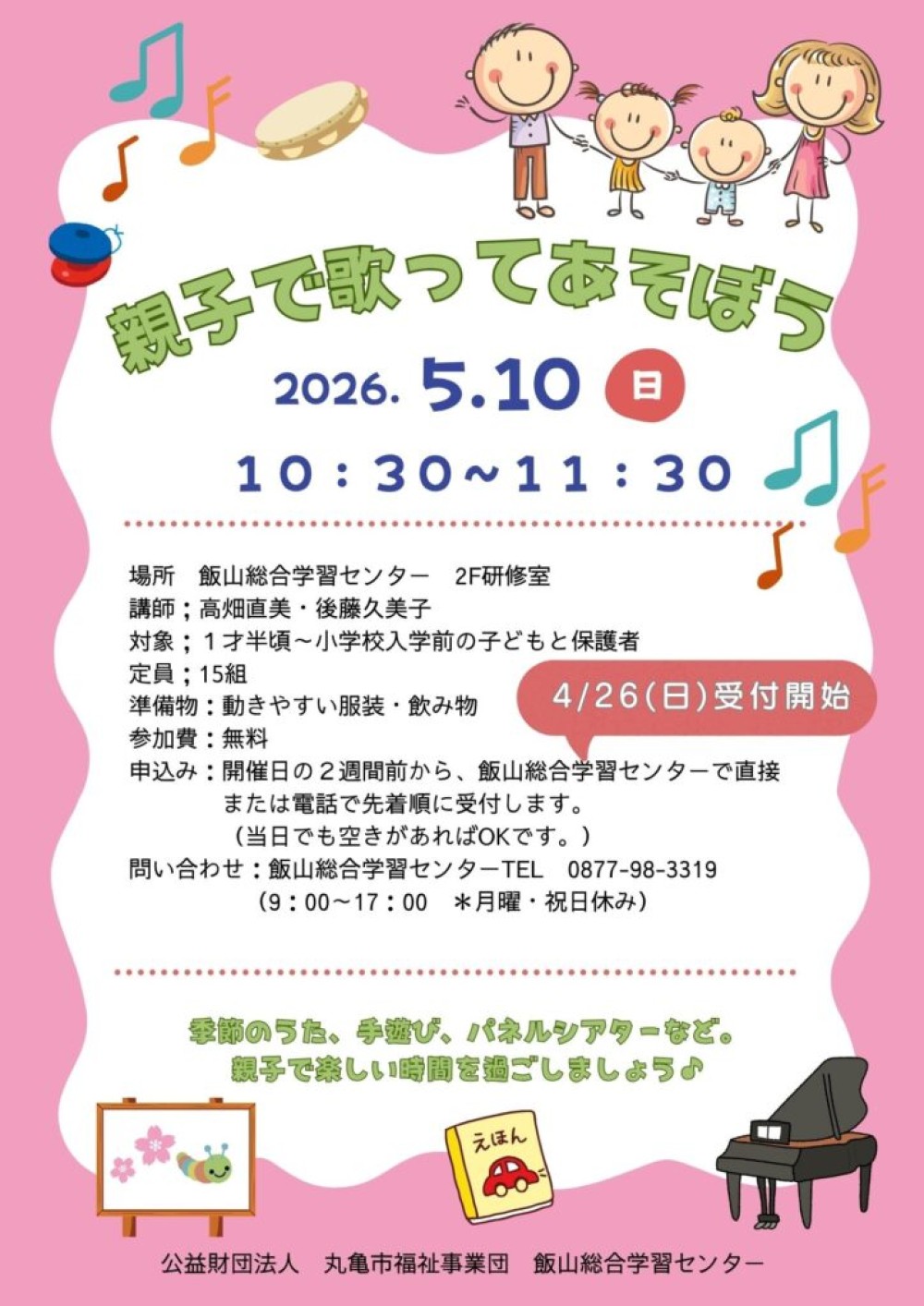 | 問い合わせ | 飯山総合学習センター Tel: 0877-98-3319 (9:00~17:00 ※月曜・祝日休み) |