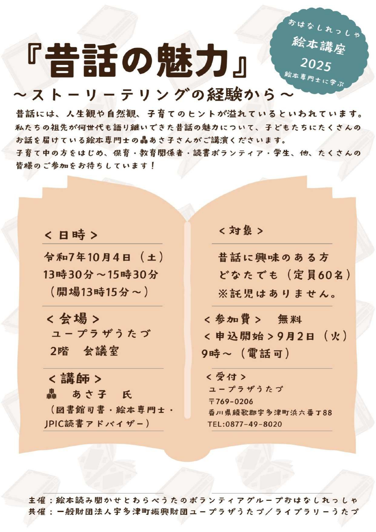 | 問い合わせ | 一般財団法人宇多津町振興財団ユープラザうたづ tel:0877-49-8020 |